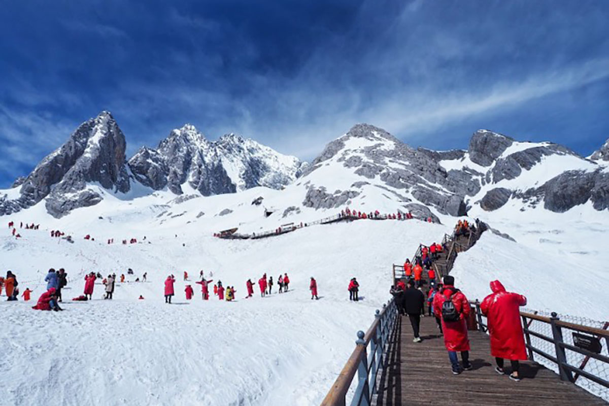 Biểu tượng của Lệ Giang, núi tuyết Ngọc Long quanh năm phủ tuyết trắng, cao hơn 5.500m. Du khách có thể đi cáp treo để chiêm ngưỡng cảnh núi non hùng vĩ, tận mắt thấy “biển mây” trôi lững lờ. Mùa đông, đây còn là nơi lý tưởng để trải nghiệm trượt tuyết và chụp ảnh check-in.